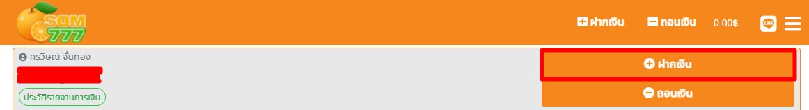 ก่อนอื่นให้เข้าระบบให้เรียบร้อยก่อย หลังจากนั้นให้ไปที่ “ฝากเงิน”
